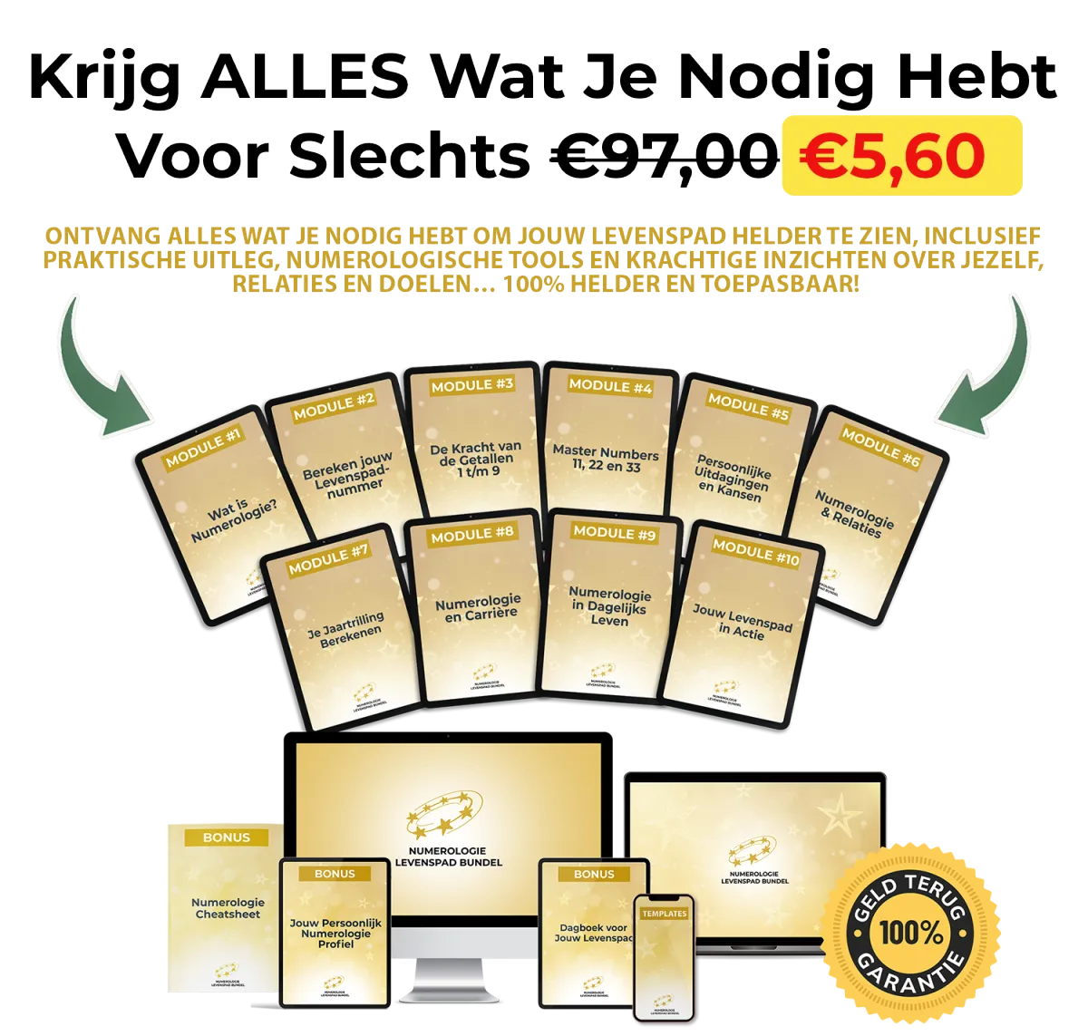 Deze bijzondere prijs is bedoeld om zoveel mogelijk mensen kennis te laten maken met de kracht van numerologie. Maar let op: deze aanbieding is van korte duur.